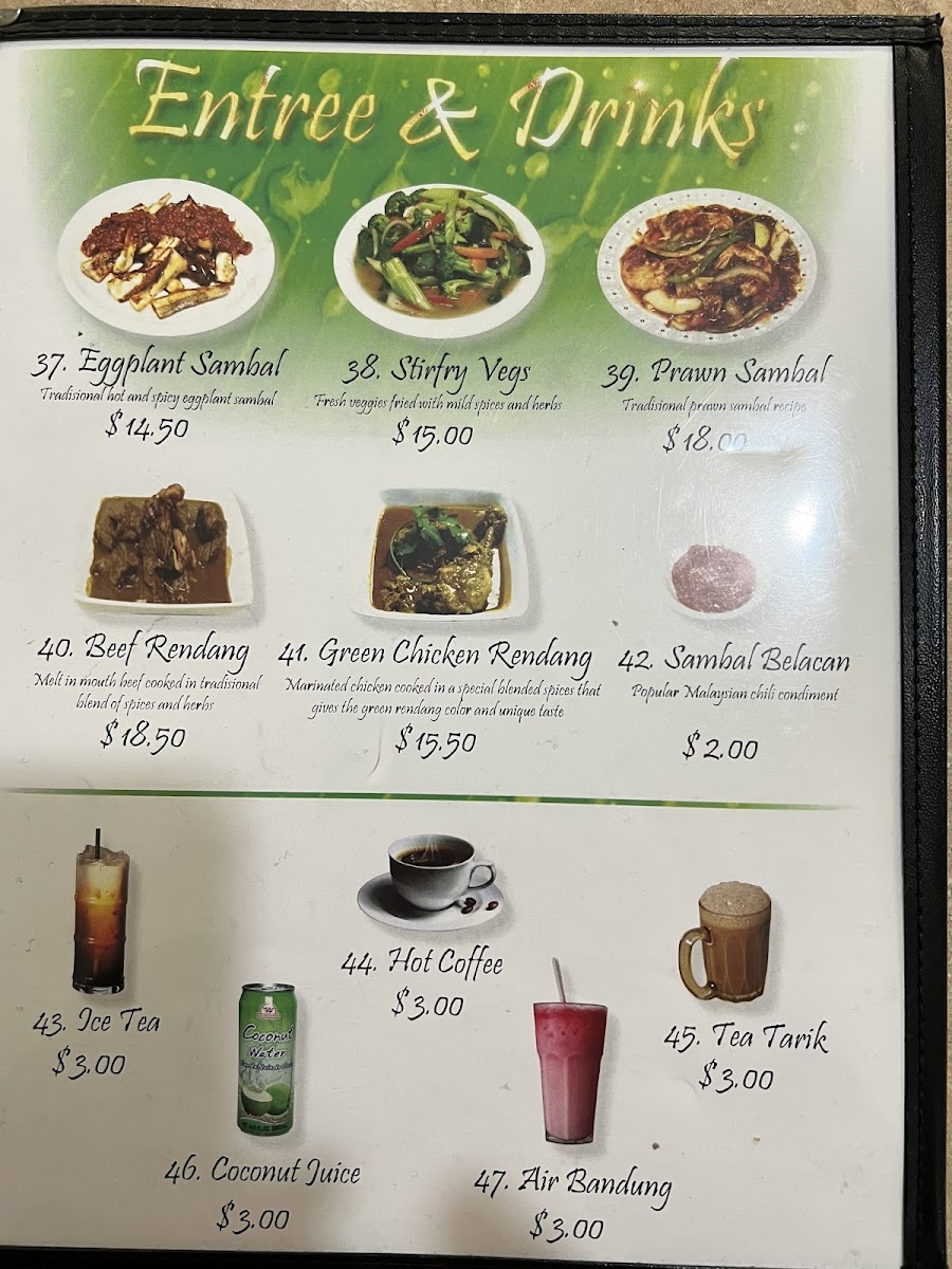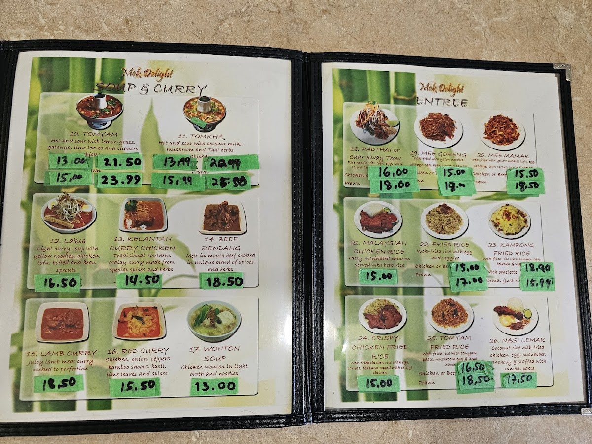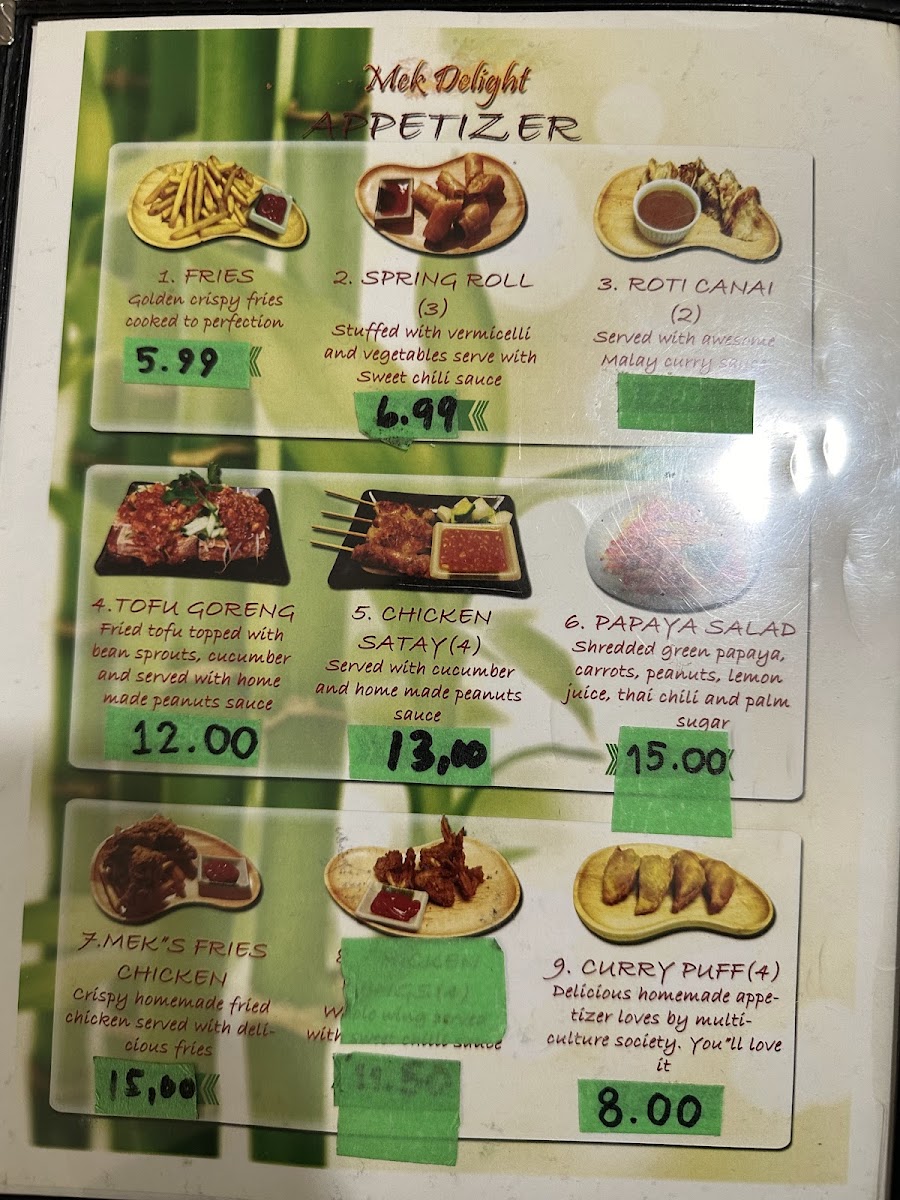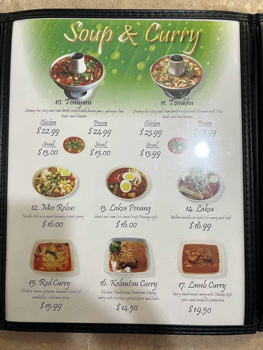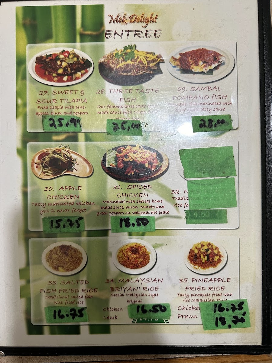 Mek's Delight offers a delightful array of flavorful dishes that showcase the rich culinary traditions of Southeast Asia. For those craving something spicy and aromatic, the Laksa is a must-try, with its bold combination of noodles, coconut milk, and a kick of heat. Pair it with a refreshing Malaysian Tea to balance out the heat and enjoy a taste of authentic Malaysian beverages. The Char Kwey Teow, a classic stir-fried noodle dish, is another standout, offering a smoky, savory flavor profile that is perfect for those looking for a more traditional taste. For a unique twist on a sweet and tangy drink, the Air Bandung is an excellent choice, providing a delightful rose syrup flavor that is perfectly paired with the savory dishes. Mek's Delight also excels in offering comfort food, with the Salted Fish Fried Rice and Egg Fried Rice, both dishes providing a satisfying and hearty option for any diner. Finally, the Crispy Chicken Fry stands out for its perfectly crispy exterior and juicy interior, making it a favorite for chicken lovers. Whether you're indulging in the bold flavors of Southeast Asia or simply enjoying a comforting fried rice, the menu at Mek's Delight is packed with diverse, flavorful options that are sure to please any palate.